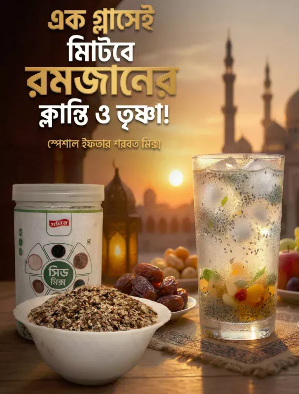 সুস্থতা আল্লাহর বড় নেয়ামত। রমজান মাসে ইবাদত করার জন্য শরীর সুস্থ রাখাটা জরুরি। ভেজাল ও কেমিক্যালযুক্ত শরবত পরিহার করে আজই আপনার ইফতারের মেন্যুতে যুক্ত করুন Monir Groceries-এর প্রিমিয়াম Super Seed Mix।